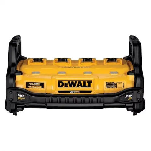 The DeWalt 1800W Power Station & 4-Port Charger delivers 1800W continuous and 3600W peak AC power from four 20V MAX® batteries. When connected to AC, it functions as a four-port fast charger for 20V MAX® and 60V MAX® batteries. Its compact 18 lb build with roll cage design enhances portability across job sites. Quiet and emission-free, it provides corded performance without the limitations of gas-powered equipment.