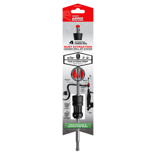 Features The dust cap catches small debris particles at the beginning of the drilling process Diablo’s exclusive Dura-Carbide™ features up to 2X more carbide that withstands up to 1800°F of intense heat to combat rebar hits versus standard bits that fail at 800°F Patented vacuum system + steel dust sleeve capture dust particles and reduce airborne silica dust to create clean holes ready for epoxy and anchor placement in two simple steps Compact Snap-Lock™ Adapter (sold separately, two versi...