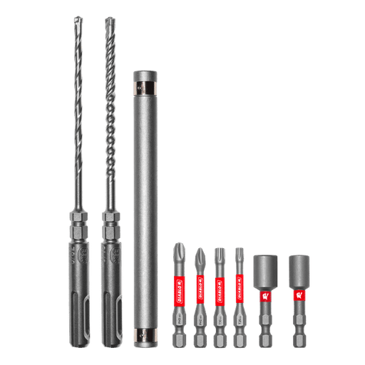 Features Maximum durability and stability for setting masonry screws and concrete anchors 2-in-1 quick drill and anchor fastening system Compatible with 5/32”, 3/16” and 1/4" Concrete Anchor Hammer Drill Bits Compatible with quick change bits and nut setters Maximum performance in cordless and corded SDS-Plus rotary hammers and 1/4 in. hex tools Specifications Shank: SDS Plus Length: 5-3/4" Working Length: 5-3/4" Number of Cutters: 2 Pack Quantity: 1