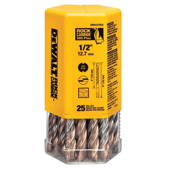 DeWalt ROCK CARBIDE SDS+ 1/2" x 4" x 6" Hammer Drill Bit - 25 Qty
