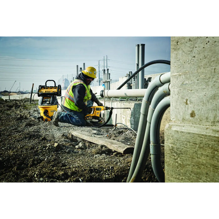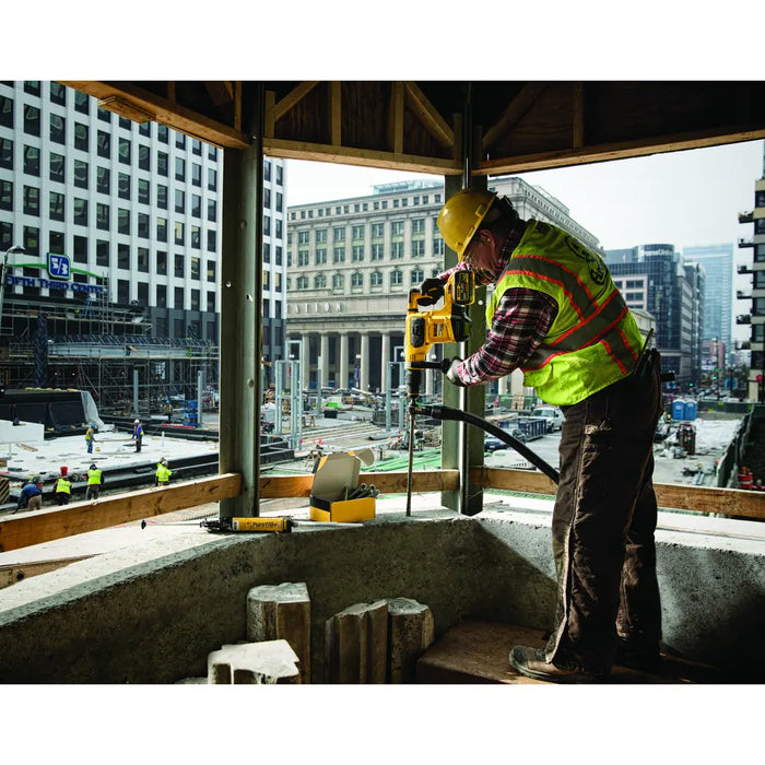 With 6.1 Joules of impact energy, the DeWalt 1-9/16 rotary hammer provides fast and efficient drilling in reinforced concrete, stone, and masonry. Its E-CLUTCH® system enhances user safety by detecting and reducing sudden torque reactions, while the constant speed control ensures consistent drilling under load.