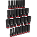 • Kit includes 28 Deep SAE and Metric Sockets and 1 Extension. The following sizes are included - 7/16, 1/2, 9/16, 5/8, 11/16, 3/4, 13/16, 7/8, 15/16, 1, 1-1/16, 1-1/8, 1-3/16, 1-1/4, 10, 11, 12, 13, 14, 15, 16, 17, 18, 19, 21, 22, 26, 27, and (1) 3" Extension