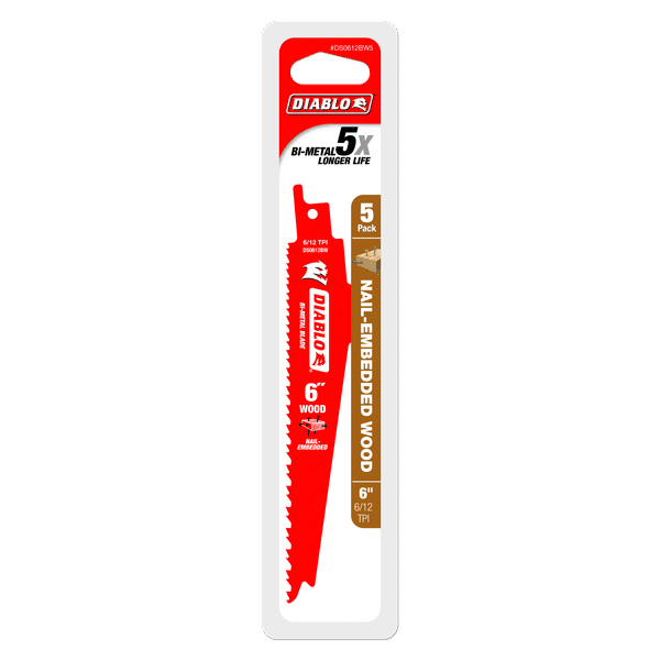 Diablo 6" x 6/12-TPI Bi-Metal Reciprocating Saw Blades for Nail-Embedded Wood - 5/Pack
